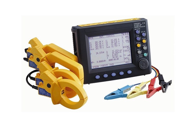 The Hioki 3169-20 are Clamp On Power HiTesters that allow measurement of single-phase to three-phase 4-wire circuits with a single unit. In addition to measuring standard parameters such as voltage, current, power factor, and integrated values, these clamp-on power meters can simultaneously perform demand measurements required for carrying out power management and energy-saving measures, as well as harmonic measurements.