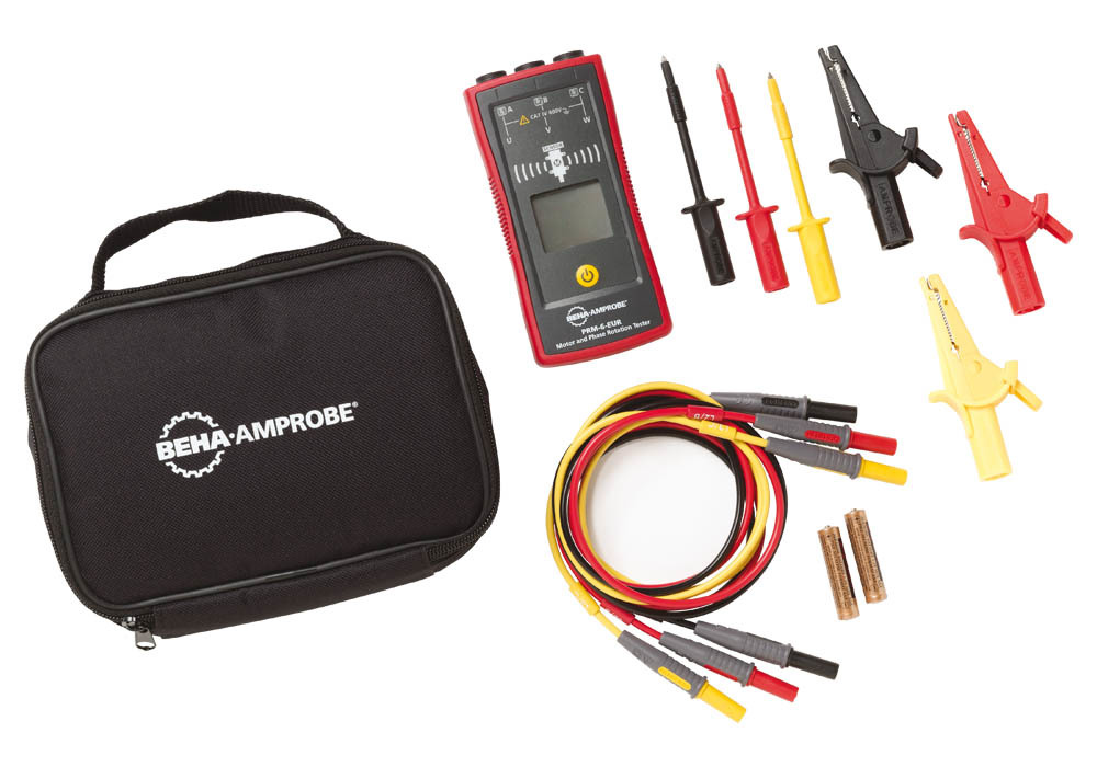 The PRM-6 Motor and Phase Rotation Tester can test the motor rotation of 3-phase systems, and verify 3-phase receptacle wiring and phase sequencing with test leads.